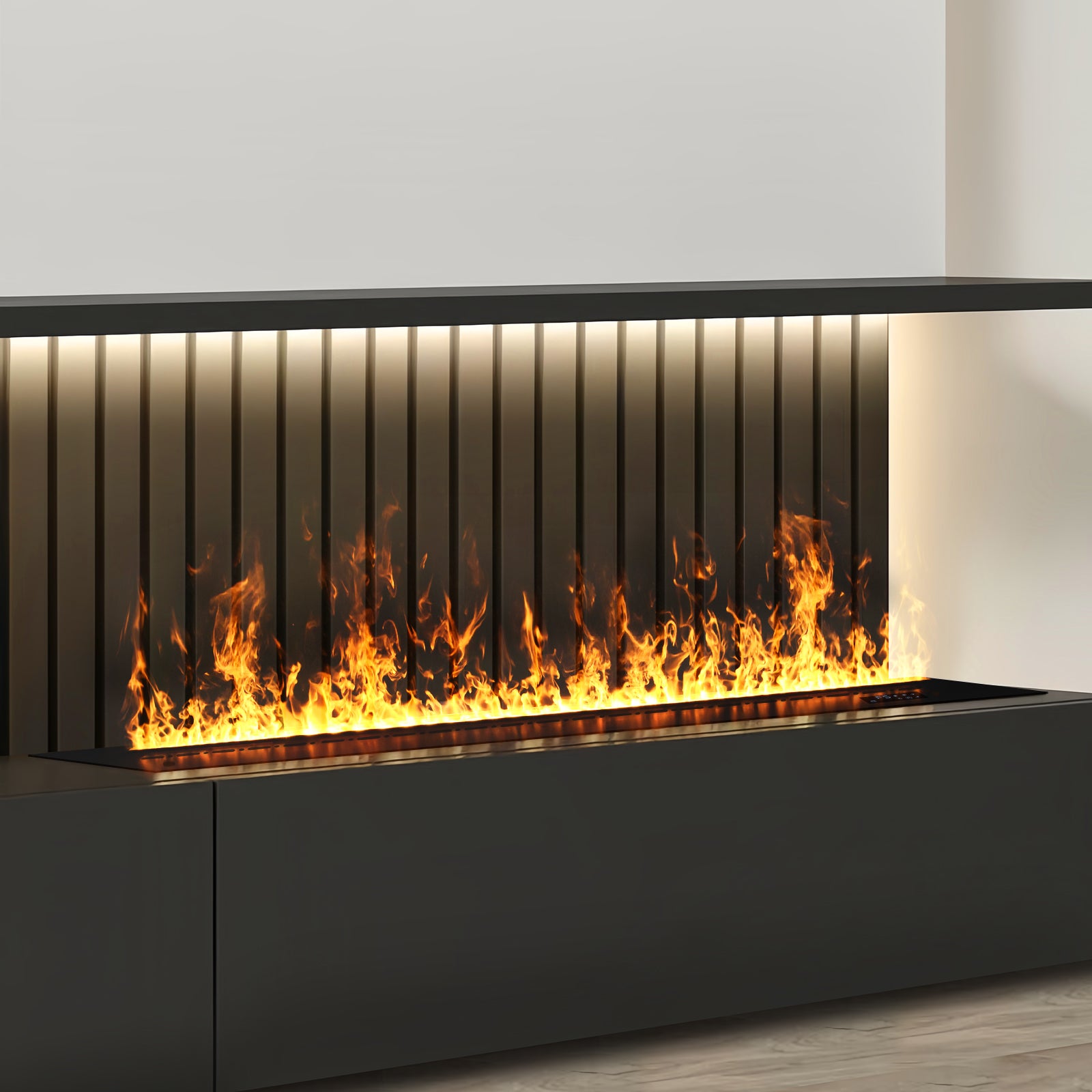 Upptäck en helt ny typ av eldstadsupplevelse med FRÉS 3D Water Vapor Fireplace – där ultrarealistiska flammeffekter möter intelligent styrning, ett automatiskt vattensystem och modern inredningsdesign. Denna innovativa eldstad avger varken värme, rök eller utsläpp – bara säker, sval vattenånga och omgivande LED-belysning, vilket skapar en fängslande atmosfär utan kompromisser.