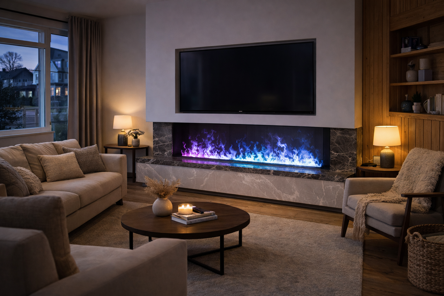 FRÉS 3D Water Vapor Fireplace – PremiumBuilt-In Smart Fireplace i interiören
